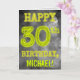 A frente deste design de cartão de saudação personalizado, de aparência assustadora, apresenta a mensagem "aniversário de 30 anos HAPPY" com personagens que têm uma aparência brilhante e misteriosa, em um padrão de fundo de nublado de cinza. A frente também apresenta um nome de destinatário personalizável. O dentro apresenta uma mensagem de saudação de aniversário que pode ser personalizada. Um cartão de saudação de aniversário personalizável como este pode ser dado a alguém que comemora seu trigésimo aniversário. [~Z0000364]