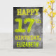 A frente deste misterioso design de cartões de saudação, editável e com tema de aniversário, apresenta a mensagem "FELIZ 17º ANIVERSÁRIO" com personagens que têm uma aparência estranha e brilhante, em um padrão de fundo inspirou nublado de nuvens de cinzas. A frente também apresenta um nome de destinatário personalizado. O dentro apresenta uma mensagem de saudação de aniversário que pode ser personalizada. Um cartão de boas-vindas de aniversário editável como este poderia ser dado para comemorar o 17º aniversário de alguém. [~Z0000364]
