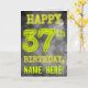 A frente desta ilustre design de cartão de saudação personalizável, com tema de aniversário, apresenta a mensagem "FELIZ 37º ANIVERSÁRIO" com personagens que têm uma aparência brilhante e misteriosa, em um padrão de fundo inspirou-se névoa de cinza assustadora. A frente também apresenta um nome de destinatário personalizado. O dentro apresenta uma mensagem de saudação de aniversário personalizada. Um cartão de saudação de aniversário personalizado como este pode ser uma maneira especial de enviar uma saudação de aniversário a alguém que comemora seus trinta e sete anos. [~Z0000364]