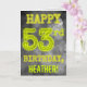 A frente desta estranha design de cartão de saudação personalizável, com tema de aniversário, apresenta a mensagem "FELIZ 53º ANIVERSÁRIO" com personagens que têm uma aparência brilhante e misteriosa, em um padrão de fundo inspirou-se névoa de cinza assustadora. A frente também apresenta um nome de destinatário editável. O dentro apresenta uma mensagem de saudação de aniversário que pode ser personalizada. Um cartão de saudação de aniversário personalizado como este pode ser uma maneira especial de enviar uma saudação de aniversário a alguém que está comemorando seu 53º aniversário. [~Z0000364]