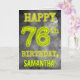 A frente deste misterioso design de cartões de saudação personalizável, com tema de aniversário, apresenta a mensagem "FELIZ 76º ANIVERSÁRIO" com personagens que têm uma aparência estranha e brilhante, em um padrão de fundo de nublado inspirado em nuvens de cinzas. A frente também apresenta um nome de destinatário editável. O dentro apresenta uma mensagem de saudação de aniversário personalizada. Um cartão de cumprimentos de aniversário personalizado como este pode ser dado a alguém que comemora seus setenta e seis anos. [~Z0000364]