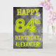 A frente deste design de cartão de saudação, com aparência assustadora e editável, apresenta a mensagem "FELIZ 84. º ANIVERSÁRIO" com personagens que têm uma aparência brilhante e misteriosa, em um padrão de fundo inspirou-se névoa de cinza sinistra. A frente também apresenta um nome de destinatário personalizável. O dentro apresenta uma mensagem de saudação de aniversário personalizável. Um cartão de saudação de aniversário personalizável como este pode ser usado para enviar uma mensagem de saudação de aniversário a alguém que comemora seu 84º aniversário. [~Z0000364]