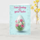 This design shows a softly glowing, crystal-like egg-shaped vase centered on a spring scene, holding a bouquet that feels like a gentle gift between close friends 🌷. Inside, large fuchsia-pink flowers with many layered petals open wide, their golden-yellow centers leaning toward one another like they’re sharing a quiet moment. Smaller white blossoms with bright yellow hearts nestle between the pink blooms, adding a tender contrast that reads like a sweet, supportive bond. Fresh green stems and leaves fill out the arrangement, and the light catches the smooth surface of the vase with faint reflections. A light shadow sits beneath the vase to anchor it against a calm, airy background of soft blue tones. Across the upper area, a flowing seasonal greeting appears in magenta lettering, standing out clearly above the flowers 🐇. The pink petals show subtle highlights, and the vase’s glossy edge curves around the bouquet with a pale, glassy sheen.