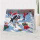 Cartão Springer Spaniel Correndo Neve com Chapéu de Natal
