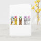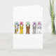 Cartoon cats segurando cartões coloridos pastéis que têm letras no que soletra 'Sr. e Sr.'.