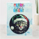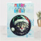 Cartão Stained-Glass Christmas Grey Tabby In Green Hat