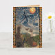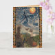 Esta carta de Halloween mostra uma noite estrelada com uma bruxa esboçada em estrelas voando pelo céu sobre os campos de abóboras. O design é de uma placa de Halloween de 1913.