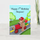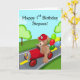 Este lindo ursinho de pelúcia, cavalgando um caminhão de bombeiros vermelho brilhante e orgulhosamente vestindo seu primeiro chapéu de bombeiro, faz o design perfeito para celebrar o marco especial do primeiro aniversario de seu enteado.
