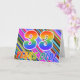 A frente desta emocionante, atraente e vibrante design de cartões de aniversário apresenta um padrão listrado colorido, juntamente com a mensagem "33 anos!" tendo um arco-íris multicolorido como um padrão de gradação. O dentro apresenta uma mensagem de saudação personalizada, ou talvez possa ser apagado e deixado o vazio se uma mensagem for escrita manualmente. Um cartão de boas-vindas como este pode ser uma maneira divertida de reconhecer o trigésimo terceiro aniversário de alguém. [~Z0000351]