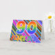A frente deste design de cartões de saudação de aniversário, divertidos e vibrantes apresenta um padrão de listras colorido, junto com a mensagem "90 anos!" tendo um arco-íris multicolorido como um padrão de gradação. O dentro apresenta uma mensagem de saudação personalizável, ou talvez possa ser apagado e deixado o vazio se uma mensagem for escrita manualmente. Um cartão de boas-vindas como este poderia talvez ser uma maneira divertida de celebrar o nonagésimo aniversário de alguém. [~Z0000351]