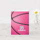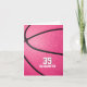 Este simples cartão de saudação do tema basquetebol para raparigas apresenta uma bola de basquete rosa abstratamente sobredimensionada na frente e dentro à esquerda do cartão - personalize o nome do jogador e o número de camisa na frente do cartão e a mensagem personalizada sobre uma pequena bola de basquete no dentro do cartão - por katz_d_zynes