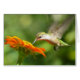 O doce beija-flor visita um girassol mexicano laranja brilhante.