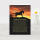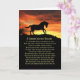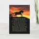 Cartão de solstício de verão com um belo cavalo silenciado no longo pôr do sol do dia mais longo. Um poema de bênçãos, envia intenções excelentes sobre este maravilhoso Sabbat.