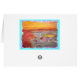 mostra um pescador de moscas amarrando uma mosca com o pôr do sol e a truta arco-íris perseguindo uma mosca da arte original! também slogan "desejando um pôr do sol da pesca de mosca" na dentro