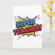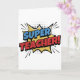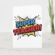 A vibrant, superhero-inspired vector design featuring a teacher in a heroic pose, complete with a cape and mask, accompanied by bold, "Super Teacher" typography in an action-packed comic book style.