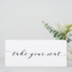 Fonte de caligrafia preta com floreios contra papel branco crocante para cartões de quadro de mesa.
