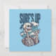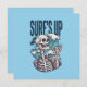 O design legal "Surf para Cima" retrata um esqueleto que faz o sinal de mão "shaka" e a onda oceânica e palmeiras ao fundo. Este design de surfe divertido e atraente faz um belo presente para qualquer um que adora surfar e gosta de esqueletos, crânios e designs de surfistas engraçados.