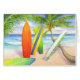 Prancha coloridas que sentam-se na costa e entre as palmas, esperando pacientemente seu "Kahunas grande!" :: Aguarela original por Barbara Bayer