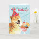 Feliz aniversário com este design bonitinho com um sorridente e vestido Shiba Inu com um sundae de sorvete. O texto pode ser facilmente alterado; basta clicar no botão personalizar.