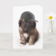 Blanco card with a sweet Leonberger dog puppy card wearing a cap.