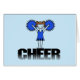 T-shirt Cheerleading, hoodies, canecas, cartões, etiquetas, sacolas, ímãs do cheerleader, selos postais, e outros artigos do roupa e do presente do cheerleader com cheerleading em um uniforme azul e em poms do pom.