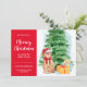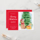 Este adorável gato de mesa fica em frente a uma árvore de Natal com presentes para te trazer alegria de Natal! Esta aquarela inclui um gato marrom e laranja giro com chapéu de Papai Noel e arco vermelho, próximo a presentes envoltos, em frente a uma árvore de Natal verde. Esta pequena cara está te desejando um Feliz Natal! Você pode personalizar totalmente este design alterando a saudação, os nomes e o nome do animal de estimação. Este na moda, ainda que barato, design de cartão plano pode ser personalizado, e é perfeito para amantes de gatos, amantes de felinos ou amantes de animais de estimação.