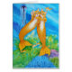 Duas tábuas de sereia nadando sob o mar com os peixes ouros.