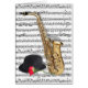 Design de Digitas. O chapéu do saxofone e de jogador projeta com aumentou em um fundo da folha de música. Inspirado por meu amor da música jazz. Um tesouro para algum fã do jazz. Projetado como cartão aberto do vazio para que você adicione sua própria mensagem.