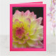 Feliz Cumpleaños. Este é um español do en do cartão do design das belas artes do decano Johnson. Este tarjeta de Feliz Cumpleaños caracteriza o amarilla de Dalia rosa-púrpura y do La com uma beira de rosa. Las Dalias é nativo a México, a Centroamérica, e a Colômbia. Gracias para apoiar minha loja de Zazzle.