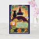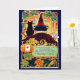Design de carta de tarô de Dia das Bruxas elegante, completa com um gato preto e uma bruxa.