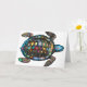 O trabalho de arte nesta carapaça de tartaruga evoca uma inclusividade e cor que traz alegria.