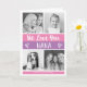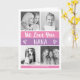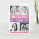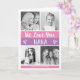 Este cartão de apresentação e na moda apresenta quatro fotos de você e sua avó, com blocos de cores modernos, roxo rosa e lavanda, com tipografia escrita à mão branca e corações bonitinhos. O cartão diz "nós te amamos, Nana", e há uma dentro especial para você adicionar sua mensagem pessoal.