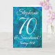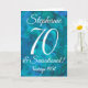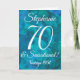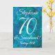 Abstrato Ocean Blue Teal 70 e Sensational Birthday Card Este é um cartão especial único de aniversário de abstrato-arte especialmente projetado para seus amigos que estão fazendo 70 anos e são sensacionais! Personalize este cartão com o nome e o ano em que foram nasceres. O nome deles também será adicionado ao dentro da placa e você poderá personalizar o dentro com o(s) seu(s) nome(s) como doador de presente/cartão. Emparelhe este cartão com uma garrafa de vinho ou uma boa caneca personalizada da nossa loja! Seu amigo vai adorar esta carta elegantemente projetada.