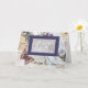 Uma placa de tecido de estilo vintage que pode ser personalizada com uma foto e um texto.