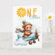 This personalized 1st birthday card features an adorable teddy bear flying through the sky, creating a sweet and dreamy atmosphere for a baby’s first birthday celebration. The design includes the word “ONE” along with the child’s name, making it a special keepsake for this important milestone. Perfect for boys or girls, this charming card is ideal from parents, grandparents, godparents, or friends celebrating a first birthday.