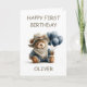 Cartão Teddy Bear with Balloons 1st Birthday