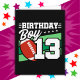 Esta design de festa de aniversário de futebol é perfeita para uma festa de aniversário de tema de futebol de 13 anos para celebrar o seu aniversário de 13! Excelente para crianças que adoram jogar futebol, assistir futebol ou futuros jogadores de futebol! Apresenta um futebol num gráfico de campo de futebol com o número 13 para o 13 de um menino.