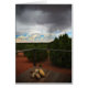 Paisagem cênica do sudoeste como vista na varanda frontal de uma Arizona. Coleção de pedras em primeiro plano moldadas pelo corrimão e pelos pórticos de madeira não acabada. Uma bela combinação de cores mudas, contrastes e elementos de composição esplêndidos.
