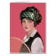 Esta jovem está pronta para um jogo de tênis. A mulher da Vintage tem um fundo rosa profundo. A placa dentro está pronta para ser personalizada.