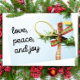 Tênis Natal com raquete e bola na árvore amor paz e cartão de alegria