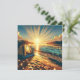 Bonito placa de vazio com uma ilustração ai de uma tenda em uma praia enquanto o sol é ascensão. Ilustração Ai feita em uma arte hiper realista do estilo dos quadrinhos.