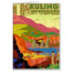 Ilustração da propaganda do vintage para um recurso de saúde em Kuling, China. "Em 4000 acima do nível do mar." Brilhante e divertimento mostra um casal chinês que olha nadadores em um recurso com as cachoeiras no fundo no Rio Yangtzé em uma região montanhosa de China.
