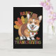 Cartão Thanksgiving Corgi Dog Turkey