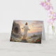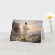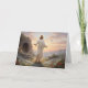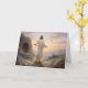 A radiant AI generated scene of the risen Jesus standing before an open stone tomb at sunrise, bathed in golden light. His arms are gently outstretched in welcome, symbolizing hope and new life. Soft beams of sunlight stream through pastel clouds, while white doves fly peacefully overhead. Spring flowers bloom around the tomb, and distant hills glow in the morning light—capturing the joy, peace, and promise of Easter morning. Perfect for a personalized Easter greeting card.