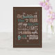 Esta carta de boas-vindas moderna apresenta um poema original de Natal que diz "A temporada está aqui, a época do ano em que os corações estão todos brilhando, com luzes cintilantes, noites de cacau quente e neve suave". O design da moda em turquesa, cacau quente e branco é realçado por uma estreita armação aquática e luzes cintilantes em fundo marrom chocolate. Faz um maravilhoso gatilho de natal para aqueles jogadores de cartas na sua lista. Procure ID593 para ver outros produtos neste conjunto de Natal coordenado.