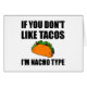 Os fãs do fast food mexicano têm seu restaurante favorito e gracejam se você não gosta do tacos então que eu sou tipo do nacho. Verifique para fora este engraçado projetam em camisetas, em camisas, em canecas, em casos, em presentes e em roupa.