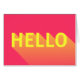 Mande um alô alegre para a família e os amigos com esta placa rosa vibrante e divertida com um design moderno abstrato de "Olá" amarelo com um longo gradiente de sombra. *Observe que a Marca d'água do Zazzle que aparece na visualização de zoom NÃO aparecerá no produto impresso final. © Rosewood e Citrus