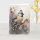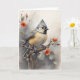 Cartão Titmice Crestada Descansando sobre Flores Vermelha