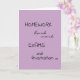 Comemore a conquista de seu amado amigo com este cartão de graduação em movimento! A frente do cartão diz: "Trabalho de casa, trabalho de duro, exames e frustração..." e continua dentro: "Tudo parece valer a pena na formatura. Parabéns!" A mensagem está em uma combinação de impressão preto no estilo manuscrito e letras de script, em um fundo lilás púrpura pastel. Personalize com outras cores, se desejar. Perfeito para formandos de segundo grau, faculdade ou escola formando!