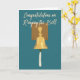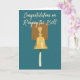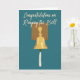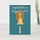 Deixe seu sobrevivente de câncer favorito saber o quanto você está orgulhoso deles com este cartão personalizável. Este cartão ilustra um sino semelhante ao dos hospitais e centros de tratamento de canceres que os pacientes tocam depois de terminarem os tratamentos para o cancer. A mensagem na frente lê "Parabéns sobre o toque da célula." A mensagem e o gráfico são colocados sobre um fundo azul lacrimejante. A mensagem dentro em letras azuis correspondentes pode ser personalizada com sua própria saudação.